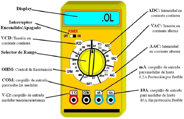 ¿FUNCION DE LAS PARTES DE UN MULTIMETRO?